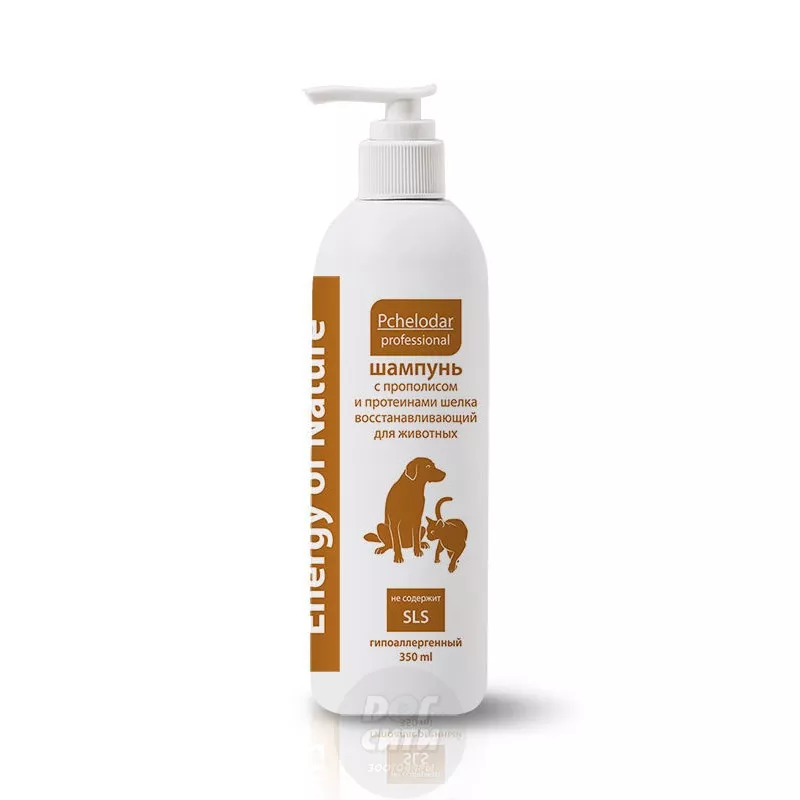 Специальная формула шампуня с прополисом и протеинами шелка, разработана для устранения перхоти и сухости кожи, уничтожения патогенной микрофлоры, вызывающей перхоть и неприятных запах у животного. Шампунь увлажняет и защищает кожу и шерсть, придавая ей легкий и приятный аромат. Экстракт прополиса оказывает разностороннее действие на кожу: бактериостатическое (задерживает рост ряда бактерий), фунгицидное (противогрибковое), противовоспалительное и регенирирующее. Протеины шелка обладают усиленными увлажняющими свойствами, выравнивают уровень рН и защищают кожу и шерсть от UV-излучения.