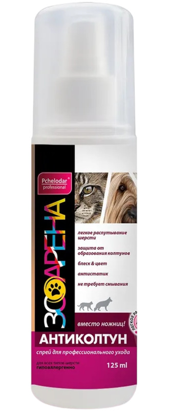 Антиколтун Пчелодар основан на целебных свойствах продуктов пчеловодства и не просто помогает распутывать колтуны, но и оказывает успокаивающее действие на кожные покровы животного.