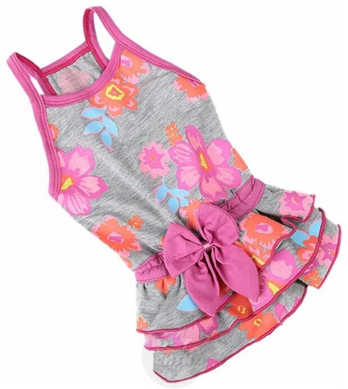 Платье из хлопкового трикотажа c ярким цветочным принтом, юбочка в три яруса. На поясе резинка для плотности прилегания. Украшено бантом на поясе.