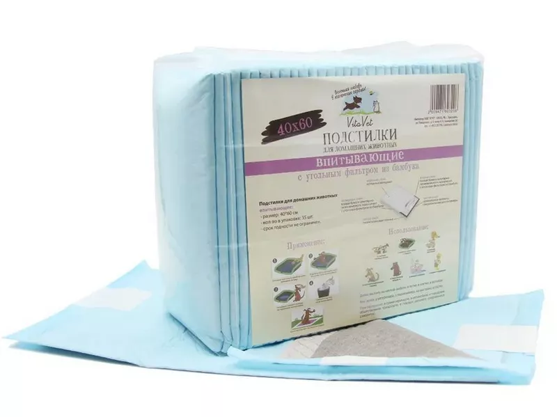 Незаменимые впитывающие одноразовые подстилки VitaVet для ухода за домашними животными. Используются в период лактации, в раннем возрасте животного, для престарелых животных, в послеоперационный период, во время перевозки, на выставках, на прогулке, в момент приучения к туалету и так далее.