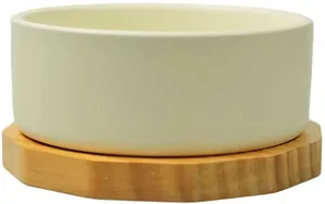 Миска Mr.Kranch Bamboo керамическая белая на бамбуковой подставке, Мистер Кранч