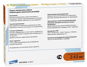 - не разрешается применять препарат собакам массой менее 2 кг и щенкам моложе 8-недельного возраста.