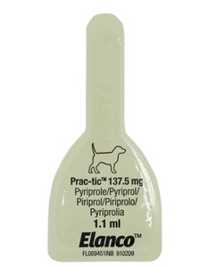 - минимальная терапевтическая доза препарата Прак-тик® составляет 0.1 мл на 1 кг массы животного, что эквивалентно 12.5 мг пирипрола на 1 кг массы животного.