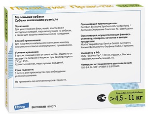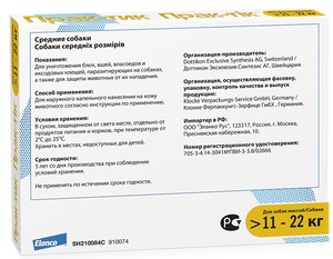 - при обработке крупных животных содержимое пипеток наносят на кожу в 2-3 точки вдоль линии спины;
