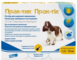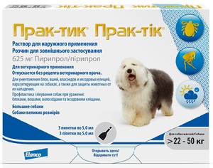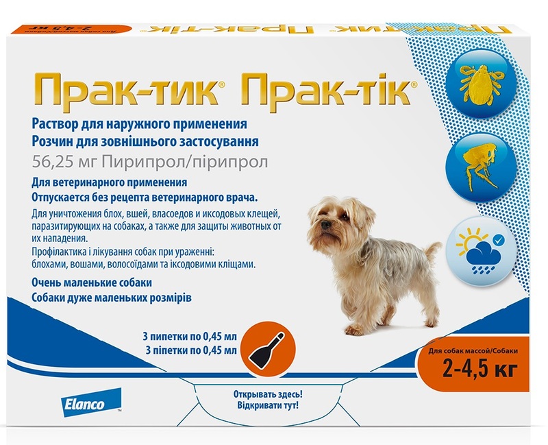 Прак-тик® для уничтожения блох, вшей, власоедов и иксодовых клещей, паразитирующих на собаках, а также для защиты животных от их нападения.