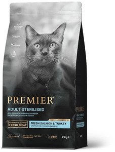 Premier Cat Salmon&Turkey Sterilised свежее филе лосося с индейкой, Премьер