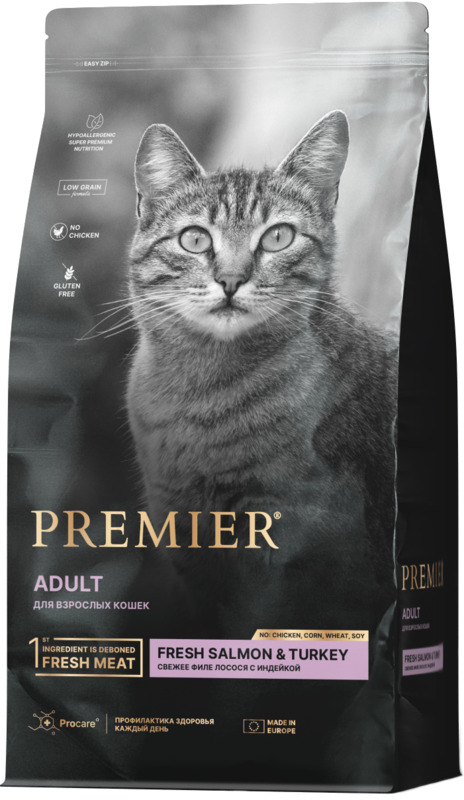 Premier Cat Salmon&Turkey Adult свежее филе лосося с индейкой, Премьер.