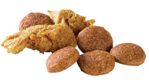 Измельченные нежные кусочки мяса производятся с использованием технологии, создающей уникальную измельченную структуру, которая так нравится собакам. Эти кусочки содержат протеины животного и растительного происхождения высокого качества, которые в сочетании с хрустящими гранулами обеспечивают 100% полного и сбалансированного ежедневного питания взрослых собак.