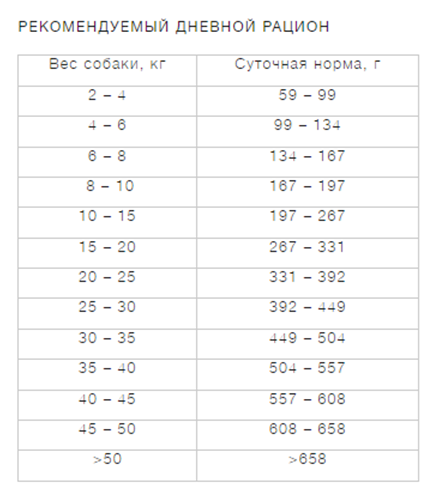 Дневную порцию корма можно давать раз в день или делить ее на два или три раза. Нормы кормления для собак разных размеров смотрите в таблице. Не забывайте о том, что у собаки на сухом корме всегда должна быть в доступе чистая свежая вода.