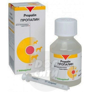Пропалин производится во Франции компанией Vetoquinol S.A. На сегодня он считается одним из лучших препаратов для лечения недержания мочи у собак. Содержит активное вещество фенилпропаноламин, воздействующее на гладкую мускулатуру нижнего отдела мочевыводящих путей.