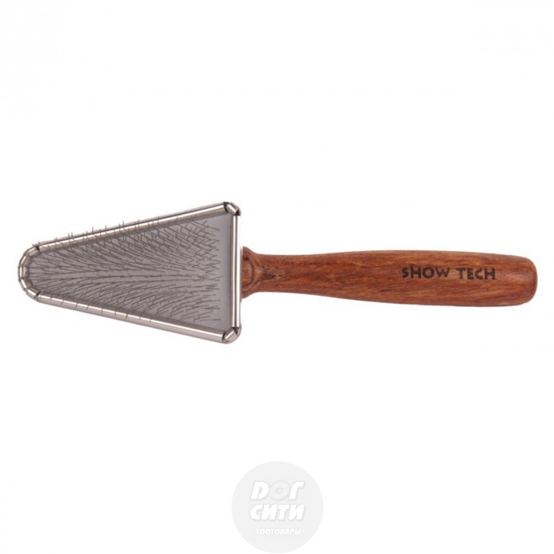 Пуходерка-сликер SHOW TECH треугольная, мягкие зубцы, деревянная рукоять, металлическая основа