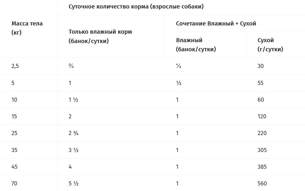 | Только влажный корм (банка) | Влажный корм (банка) | Сухой корм (г) | |