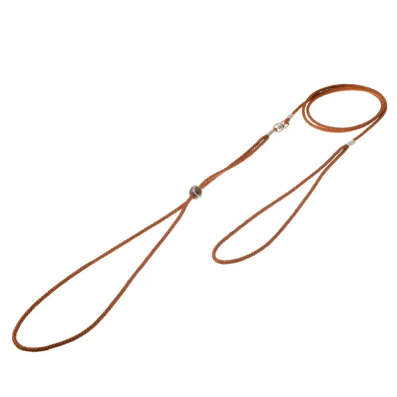 Ринговка состоит из петли с фиксатором, вертлюга и поводка с ручкой. Предназначено для животных. Самый распространенный вид выставочной аммуниции. Бусинка позволяет регулировать петлю и украшает изделие.