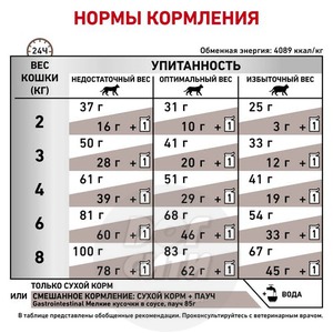 Повышенное содержание энергии соответствует энергетическим потребностям кошки, позволяет ограничить объем корма и снизить нагрузку на желудочно-кишечный тракт.