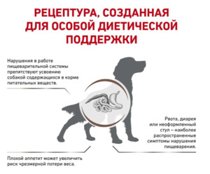 Сухой корм Royal Canin полнорационный диетический для собак, рекомендуемый при нарушениях пищеварения, в реабилитационный период и при истощении.