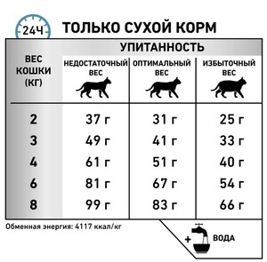 Диета с умеренным содержанием энергии для кошек при лечении мочекаменной болезни.