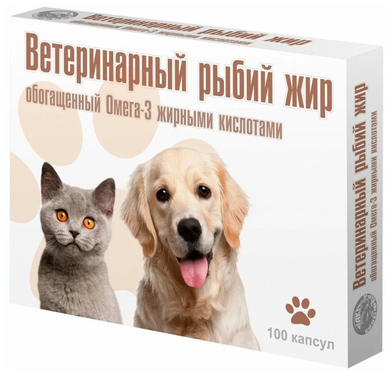 Вака ветеринарный рыбий жир, обогащённый Омега-3 жирными кислотами , 100 капсул Для ежедневного употребления вместе с питанием.