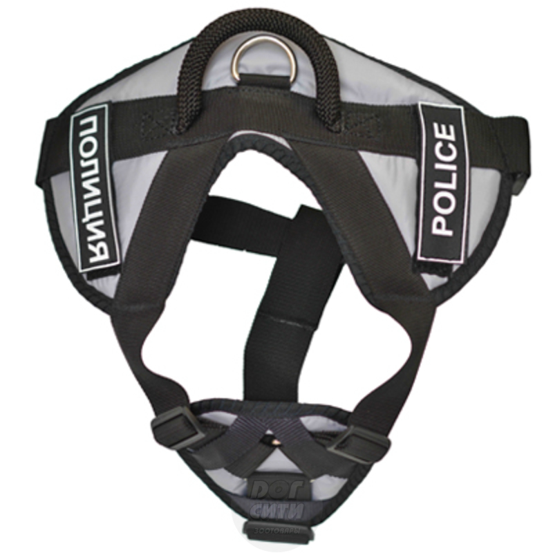 Отлично регулируется.Нейлоновая шлейка с ручкой на спине, с треугольником на груди. Регулируемые широкие ремни, фастекс. Липучки под накладки с надписью