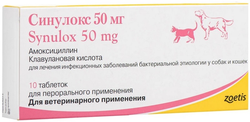 Ветеринарный врач может назначить препарат Synulox 500, 250, 50 мг, если у вашей собаки ли кошки выявлено инфекционное заболевание: