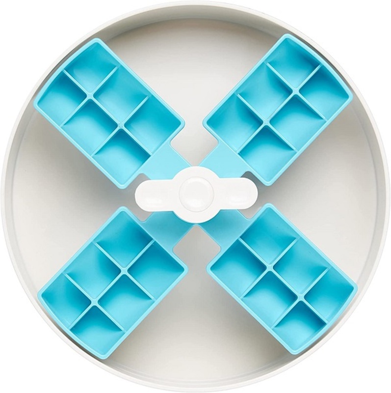 - интерактивность: в отличие от стационарных медленных кормушек, домашние животные активно взаимодействуют с движущимися и взаимозаменяемыми компонентами миски, что обеспечивает умеренно разные ощущения от кормления при каждом приеме пищи. Эти игровые кормушки развлекают собак и кошек во время еды, а также тренируют их ум;