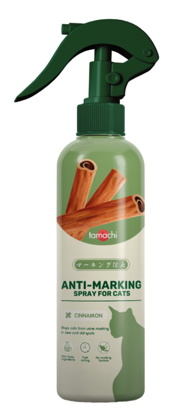 Тамачи Спрей для защиты мест не предназначенных для туалета кошек быстро и эффективно помогает отучить питомца справлять свою нужду и наносить метки в неположенных для этого местах. Средство прекрасно подходит как для котят, так и для взрослых кошек. Натуральные эфирные масла бергамота и корицы в составе средства безопасно и эффективно отпугивают животное и делают обработанное место неприятным для питомца, предупреждая повторные метки.