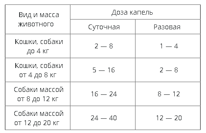 - собакам — 2 капли раствора на 1 кг массы животного.