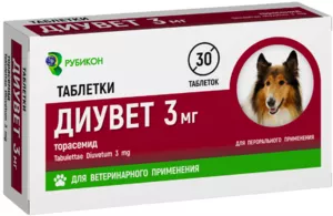 Таблетки для собак в качестве диуретического средства для купирования клинических признаков, связанных с застойной сердечной недостаточностью, включая отеки и выпоты.