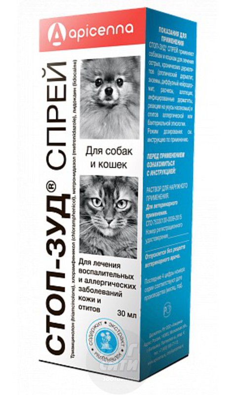 Назойливый зуд — настоящие испытание для питомца. Животному не объяснить, что нужно немного потерпеть, что расчесывать кожу нельзя. При первой же возможности кошка или собака доберется до зудящего места и быстро превратит его в открытую рану. А зуд при этом так и не отступит. Для облегчения состояния питомца, а также в рамках комплексного лечения, может быть назначен Стоп-Зуд спрей. Он подходит и для собак, и для кошек. Купить средство можно в ветеринарной аптеке Дог Сити, наличие и цена указаны на специальной странице интернет-ресурса магазина.