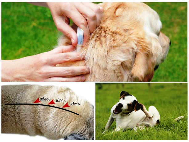- Если собака крупная, наносите препарат в нескольких местах, но там, где ваш питомец его не слижет;