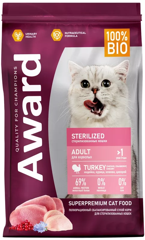 Сухой корм Award Sterilized с индейкой и курицей, Авард