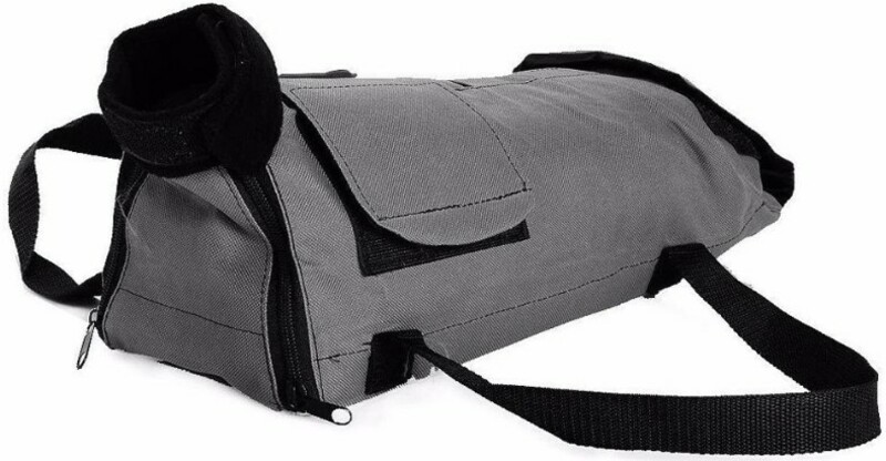 Сумка-фиксатор застегивается на молнии и липучки и фиксирует животное. Имеются отверстия на молниях, предназначенные для легкой доступности к лапам во время стрижки когтей. Воротник сделан из мягкого материала, чтобы не натирать шею кошке. Сумка-фиксатор имеет усиленное дно.
