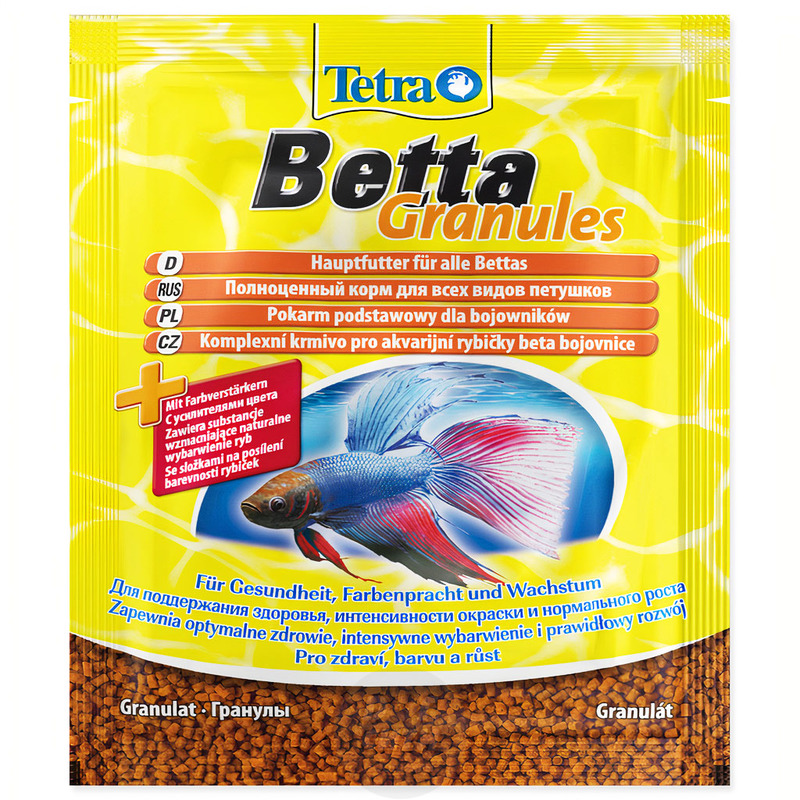 Tetra Betta Granules — это сухой высококачественный корм в виде гранул, предназначенный для сиамских петушков. Натуральные усилители цвета способствуют яркости и глубине природного окраса Петушков. Гранулы легко поедаются рыбками, размягчаясь и плавая в воде. Обогащен витаминами и нутриентами для укрепления иммунитета.