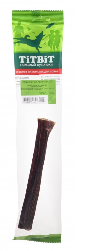 В натуральном лакомстве ТитБит пищевод говяжий высокое содержание аминокислот, коллагена и микроэлементов. Они способствуют укреплению десен и жевательных мышц. Оказывает положительное воздействие на состояние кожи, шерсти и общий обмен веществ собаки.