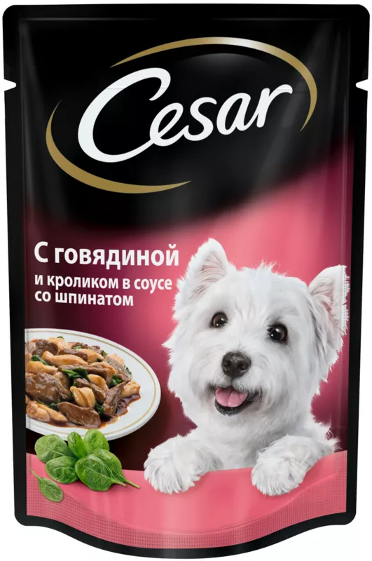 Цезарь пауч говядина и кролик в соусе со шпинатом для собак, Cesar