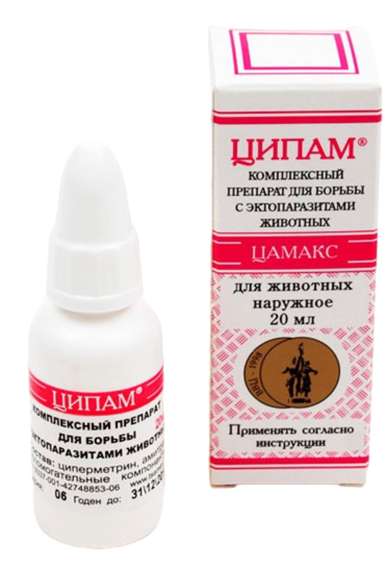 Ципам предназначен для защиты собак от нападения наружных паразитов (иксодовых клещей, блох, вшей и власоедов), а также для их уничтожения.