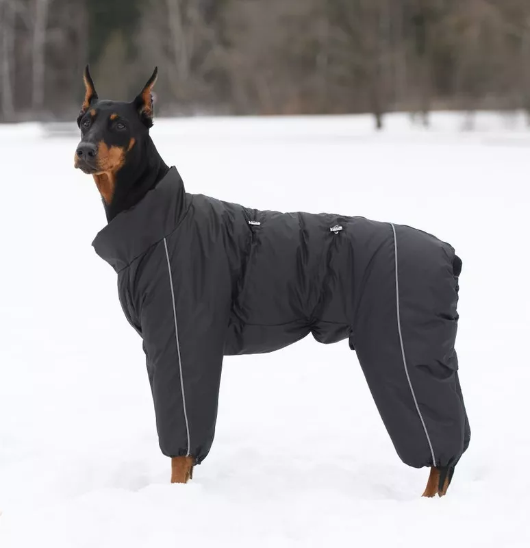 Комбинезон подходит для прогулок в холодную, морозную или сырую погоду для защиты собаки от снега, грязи и воды.